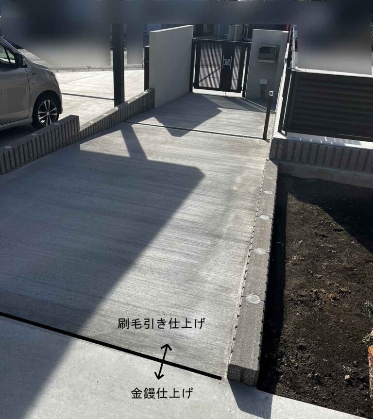 アプローチ土間コンクリート施工例(刷毛引き仕上げ)